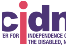 NEW YORK, New YorkCIDNY’s mission is to promote full integration, independence, and equal opportunity for all people with disabilities by removing barriers to participation in the social, economic, cultural, and civic life of the community. CIDNY’s offices in the Bronx, Brooklyn, Manhattan, Queens, and Staten Island, CIDNY employs 160 staff members and serves more than 40,000 New Yorkers with disabilities each year—many with multiple disabilities—across all five boroughs. CIDNY operates with an annual budget of more than $12 million and offers a wide range of services, including: Independent Living Skills Training, Individual and Systems Advocacy, Information and Referral, Long-Term Care, Nursing Home Transition and Diversion, Employment, Food Access, Health Care, Housing, Transportation, Peer Counseling, SSI & SSDI assistance, Youth Services, Mental Health Services, Veteran Support, Legal Services, Fee-for-Service Programs, Training, and Education.